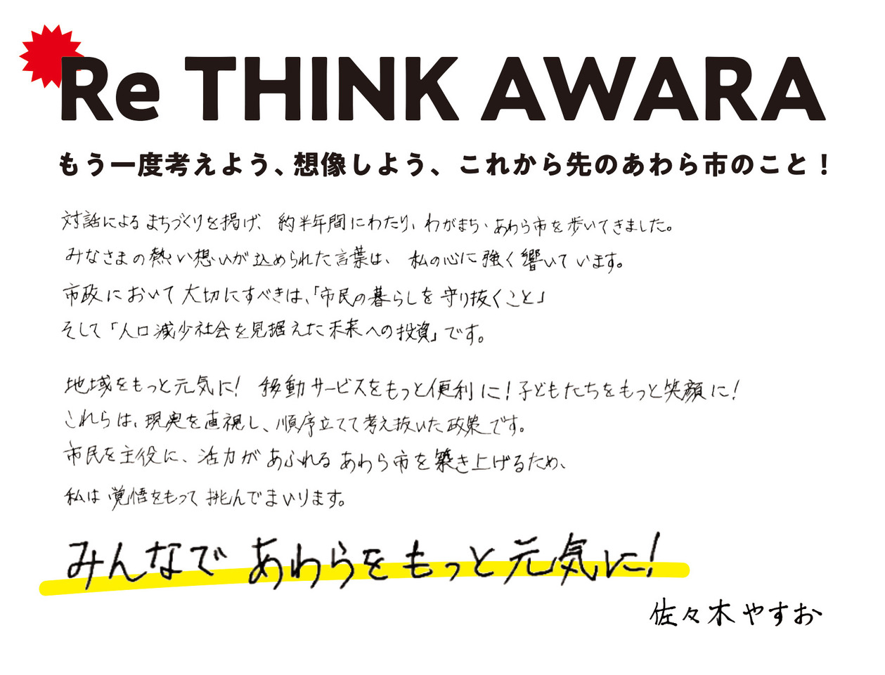 現状を打破し、希望ある元気なあわら市にするため、みんなで応援しましょう! -